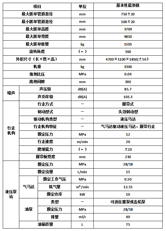 彩乐乐网抓举车功能包含动作抓、动作抬、动作举、动作靠等操作,抓机滑台纵向移动量达600mm,两个回转支承提供水平与垂直旋转自由度,使管道靠近安装位置;
