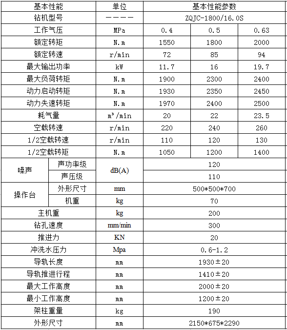 ZQJC-1800/16.0S气动架柱式钻机适用于探测地质构造煤层、探放水、抽放 瓦斯、煤体注水、卸放压力孔、巷道贯通超前孔、巷道锚杆支护孔及其他特殊用途。