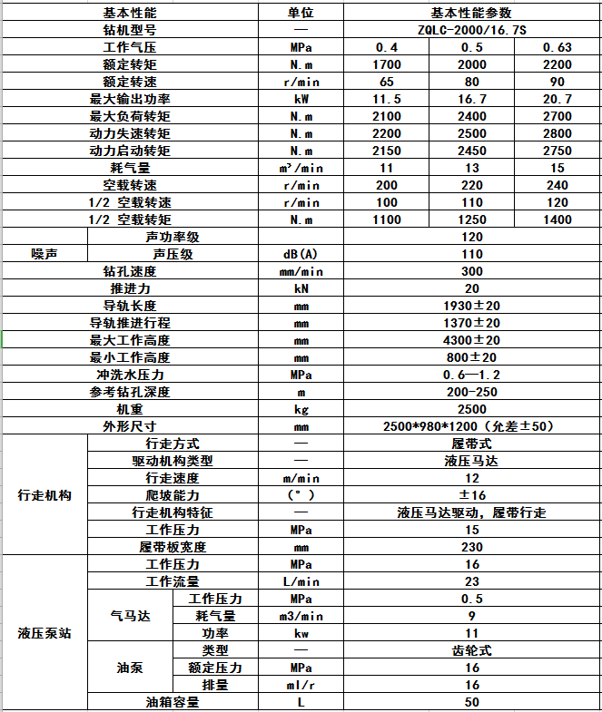 ZQLC-2000/16.7S气动履带式钻机,大功率高效率-马达采用独特的气路布局,高精密零件配合工作效率更高。该设备具有结构紧凑、操作灵活、机动性能强、安全性能好。整机采用独立模块化设计,方便故障部位维修更换,较大程度上缩短了维修保养的时间。